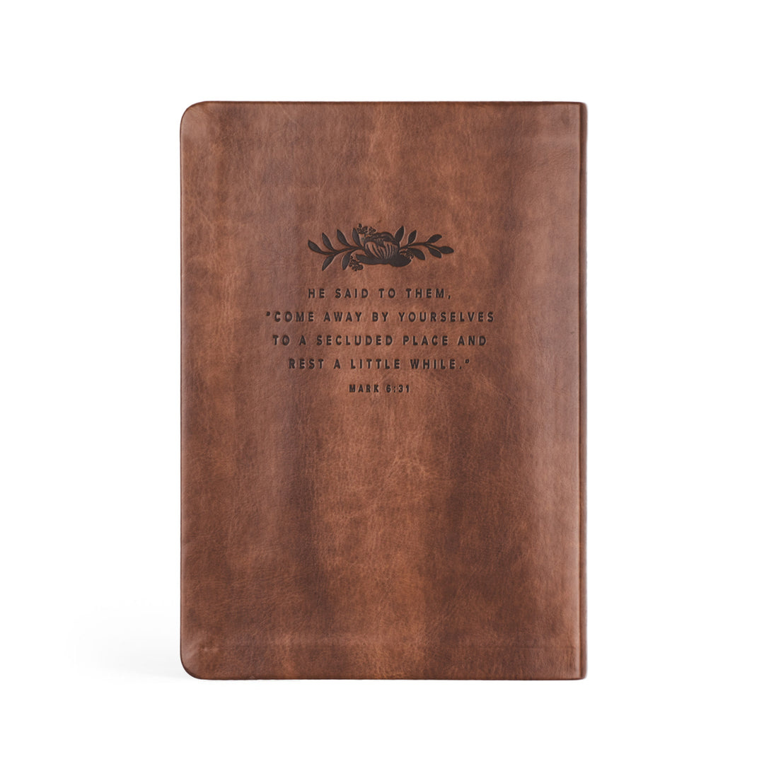 Experience the elegance and inspiration with the Aurora Notebook from Hosanna Revival, thoughtfully designed to enrich your spiritual journey. This notebook features stunning pressed floral artwork and a meaningful Bible verse on the back cover, reminding you to find rest and renewal in your walk with Christ.