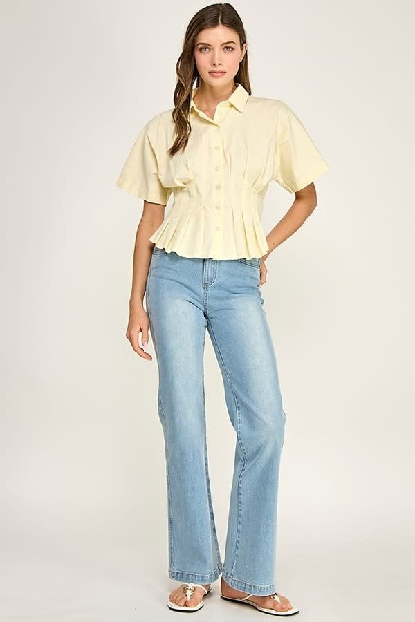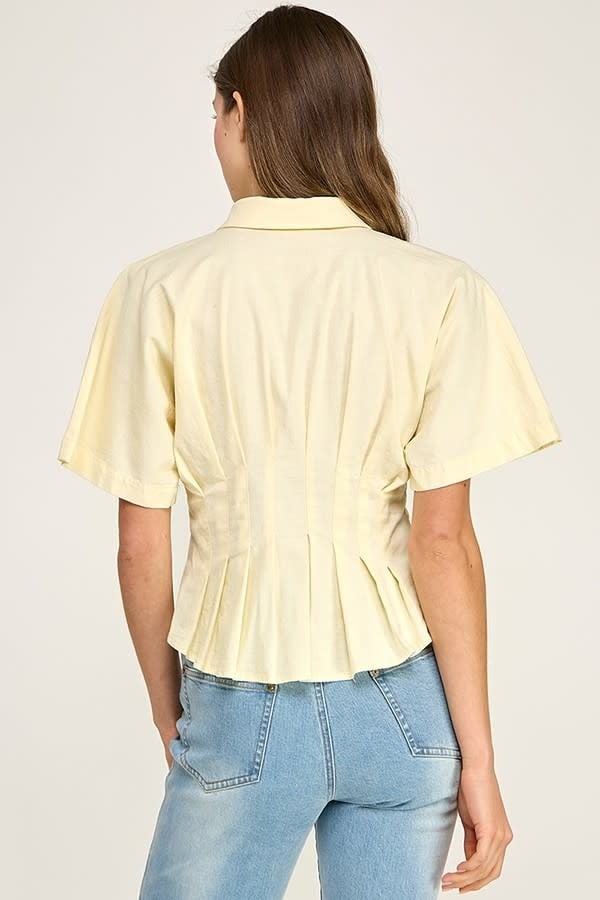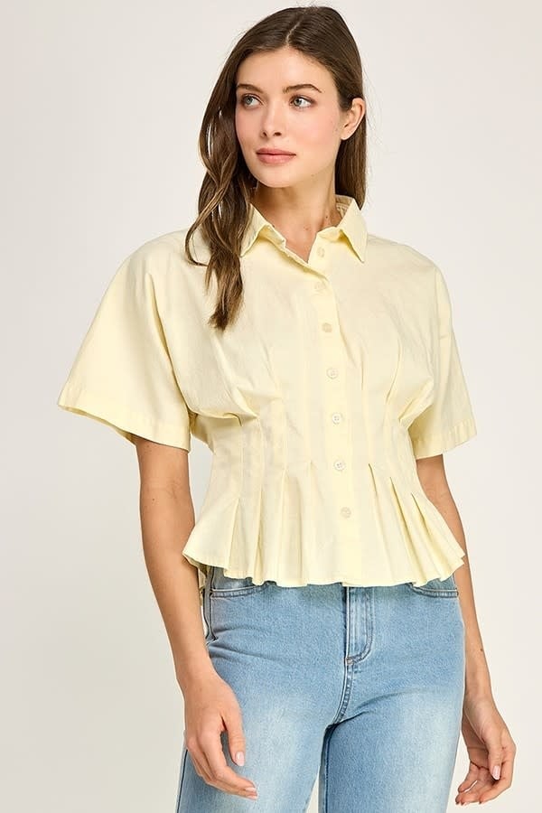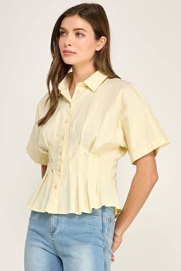 LIFE GIVING LEMONS PLEATED BUTTON DOWN TOP $62.00 Excl. taxMake a choiceSize : SSize : MSize : LSize: *SMLAdd to cartLogin for wishlist