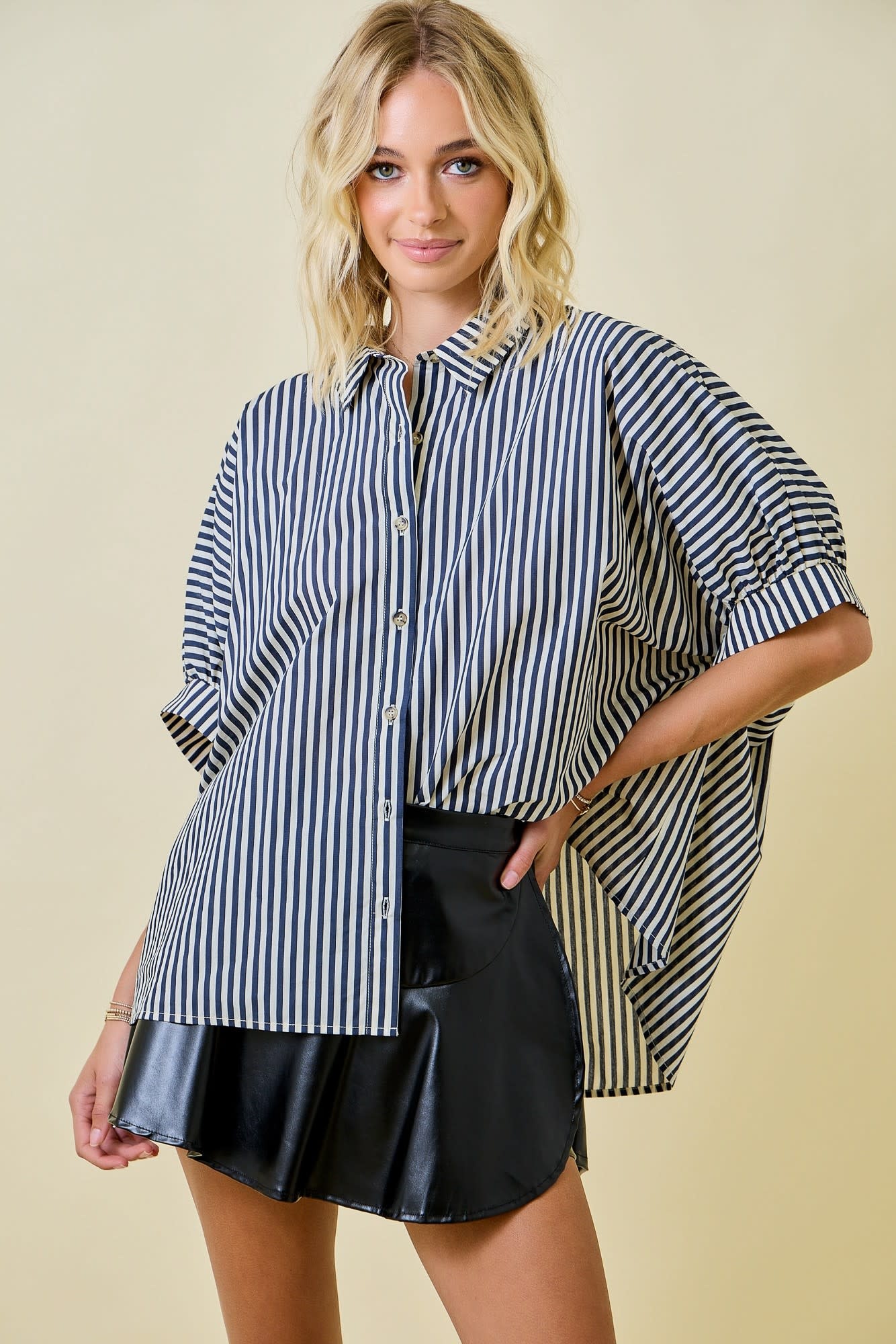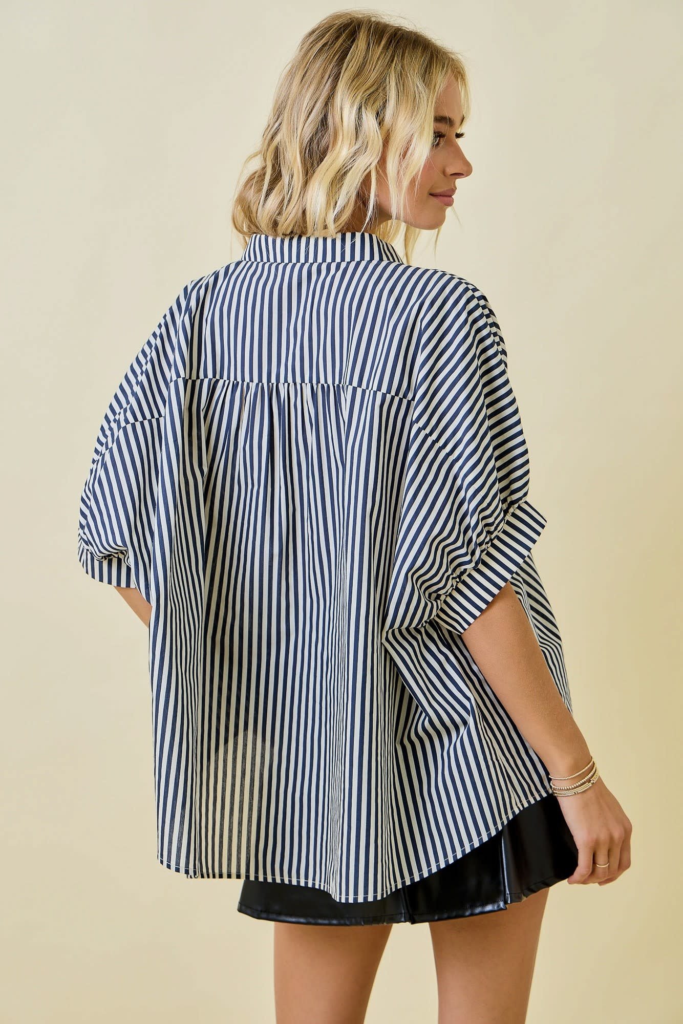 TEAGAN OVERSIZED STRIPED BUTTON DOWN-NAVY $58.00 Excl. taxMake a choiceSize : SSize : MSize : LSize: *SMLAdd to cartLogin for wishlist